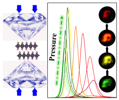 邹勃教授、王凯教授等人,利用高压方法实现了二维有机无机杂化钙钛矿材料——[HO(CH2)2NH3]2PbI4发光颜色的调制。同时,低压力下通过二维结构中独特的层间压缩效应实现了对无辐射跃迁的抑制,使低压力范围内出现压力诱导荧光增强的现象。研究成果以“Manipulating Emission Enhancement and Piezochromism in Two-Dimensional Organic-Inorganic Halide Perovskite [HO(CH2)2NH3]2PbI4 by High Pressure”为题,于2021年8月1日正式发表于CCS Chemistry杂志上。