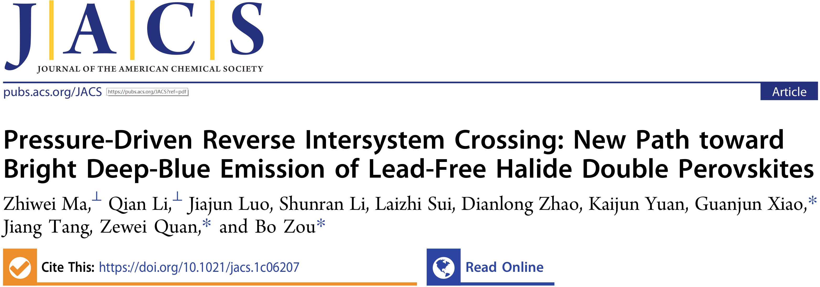 相关工作以“Pressure-Driven Reverse Intersystem Crossing: New Path towards Bright Deep-Blue Emission of Lead-Free Halide Double Perovskites”为题,发表在Journal of the American Chemical Society (DOI: 10.1021/jacs.1c06207)上。成人网站