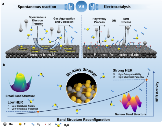 新型电池物理与技术教育部重点实验室杜菲教授团队在水系锰离子电池负极研究方面取得重要进展,相关成果以“Band Engineering of Mn-P Alloy Enables HER-suppressed Aqueous Manganese Ion Batteries”为题,于2024年10月23日在线发表至《德国应用化学》(Angewandte Chemie International Edition, DOI: 10.1002/anie.202417171)。