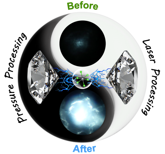 高压与超硬材料全国重点实验室邹勃教授团队肖冠军教授等人通过压强工程调控二维杂化金属卤化物(C7H7N2)2PbCl4的结构畸变程度,成功实现了压强诱导发光(PIE)的常压截获,获得了高品质可调谐白光发射。值得注意的是,高压工程处理后的(C7H7N2)2PbCl4材料同时表现出与其实材料不同的独特光活化行为,为发展高性能固态照明材料提供了新思路和新方法。相关研究成果以“Photoactivated Emission Enhancement and Solid-State Lighting Application from Pressure-Induced Emission Luminogens”为题发表在中国化学会旗舰刊《CCS Chemistry》上。