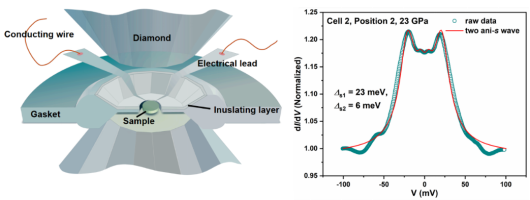 本研究在高压超导实验技术方面取得重要进展,建立了一套适用于高压环境的原位点接触谱测量方案,为高压超导体的微观物性探测提供了新的技术路径。该成果不仅为理解La3Ni2O7的高温超导机制提供了重要数据,也为高压下高温超导体系的深入研究奠定了技术基础。