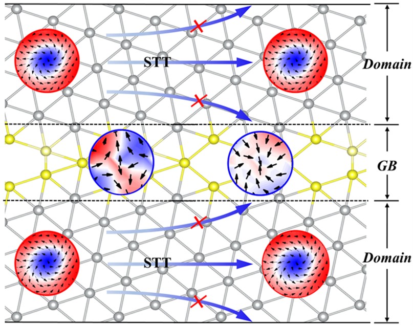 对于实际材料,几乎所有宏观晶体都由多晶结构组成,晶粒之间的“晶界(Grain Boundary, GB)”不可避免。对于二维范德华磁体,晶界不仅改变原子排布,还可能显著影响局域电子结构与磁交换相互作用。相比于对石墨烯、过渡金属二硫化物等材料晶界电子结构的广泛研究,二维磁性材料中晶界所引起的磁重构与拓扑自旋结构问题,仍鲜有系统探索。