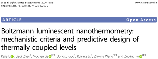 付作岭教授课题组在玻尔兹曼型发光纳米测温的机理与预测设计方面取得重要进展。该工作围绕稀土离子热耦合能级体系,建立了布居动力学理论框架,阐明了玻尔兹曼型发光测温中热耦合形成的关键判据,并引入分裂因子模型用于材料的预测设计;在此基础上,研究团队进一步构筑出高亮度、超薄、柔性的原位测温贴片,实现了反应过程中实时温度成像与高精度监测。相关成果以“Boltzmann luminescent nanothermometry: mechanistic criteria and predictive design of thermally coupled levels”为题发表于《Light: Science & Applications》。
