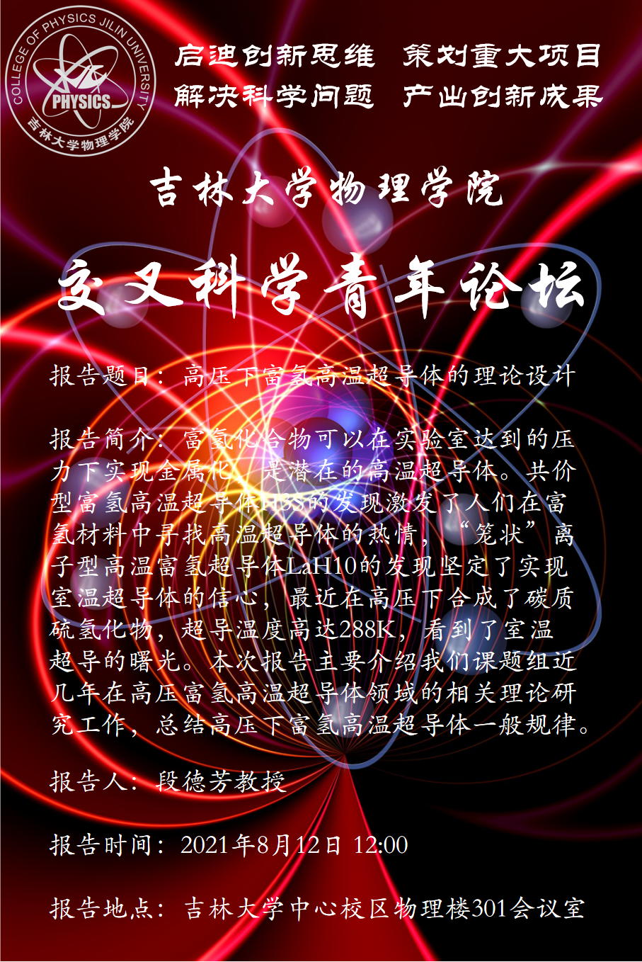 报告题目:高压下富氢高温超导体的理论设计