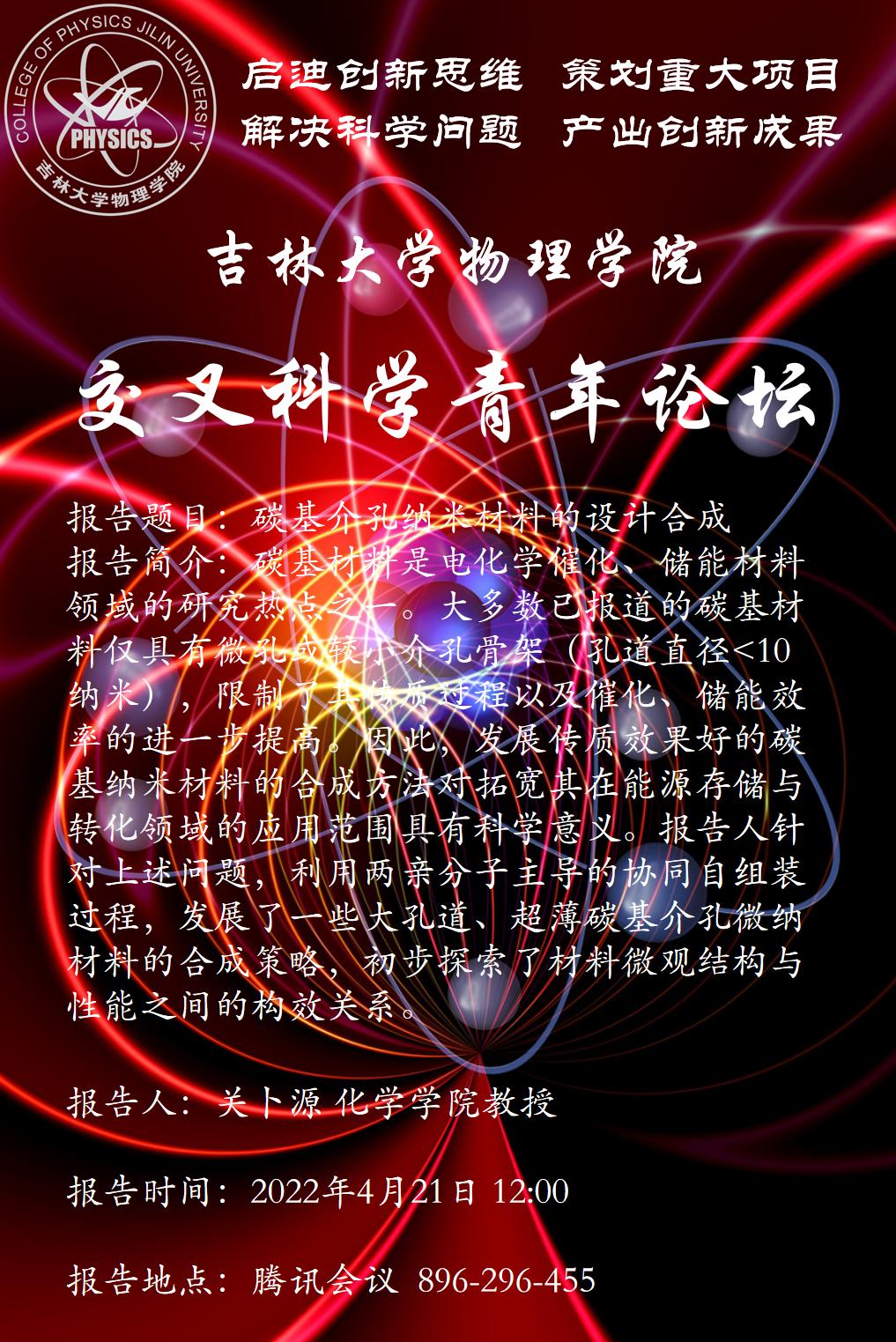 碳基材料是电化学催化、储能材料领域的研究热点之一。大多数已报道的碳基材料仅具有微孔或较小介孔骨架(孔道直径<10纳米),限制了其传质过程以及催化、储能效率的进一步提高。因此,发展传质效果好的碳基纳米材料的合成方法对拓宽其在能源存储与转化领域的应用范围具有科学意义。报告人针对上述问题,利用两亲分子主导的协同自组装过程,发展了一些大孔道、超薄碳基介孔微纳材料的合成策略,初步探索了材料微观结构与性能之间的构效关系。