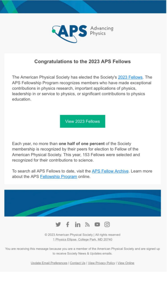 近日,美国物理学会(American Physical Society,APS)公布2023年新增会士(APS Fellow)名单,成人网站