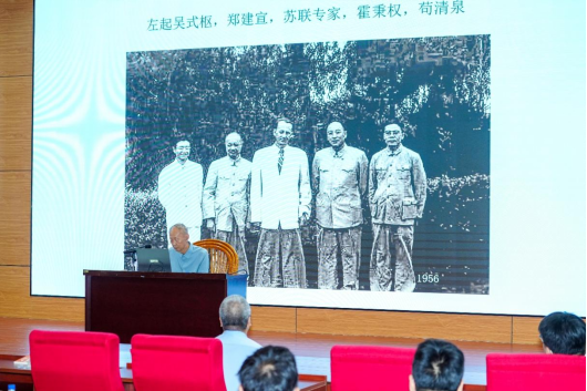 在回顾吉大物理学科奠基历程时,郑志鹏动情描绘了父亲与余瑞璜、朱光亚、吴式枢、芶清泉、霍秉权等杰出物理学家并肩创业的峥嵘岁月。他们在极其困难的条件下,开设前沿课程、创建专业实验室。短短数年间,他们披荆斩棘,将吉大物理从无到有,建设成为教学、科研、管理俱佳的学术重镇,为国家输送了大批栋梁之才,创造了学科的辉煌奠基期,为未来发展打下了不可撼动的基石。郑志鹏特别提到,当时物理系行政管理工作井然有序,党支部认真贯彻党的方针政策,对知识分子关怀备至。当讲到系支部书记温希凡同志“一心为教授服务”的感人事迹时,郑志鹏研究员数度哽咽由衷赞叹:“多好的党务工作者!”