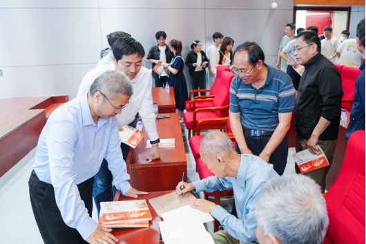 讲座结束后,郑志鹏研究员为部分师生签名赠送了《传承——郑建宣郑志鹏父子物理学家传》。该书翔实记录了两代科学家献身科研、报效祖国的心路历程与深刻感悟。作为我国高能物理领域的杰出领军学者,郑志鹏研究员历任中国科学院高能物理研究所所长、广西大学校长、中国物理学会副理事长、亚洲未来加速器委员会主席等重要职务,曾荣获国家科技进步特等奖(1990年)、何梁何利科技进步奖(2005年)、中国物理学会终身贡献奖(2022年)等多项权威荣誉。他自幼深受父亲科学精神、家国情怀与坚定信仰的熏陶,秉承父志,在科研道路上深耕不辍,成就斐然。