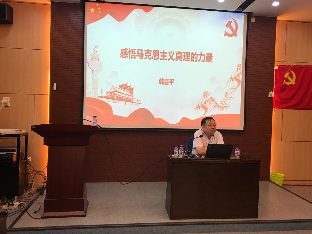 为深入学习贯彻习近平新时代中国特色社会主义思想和党的十九大精神,扎实推进党的基层组织和党员队伍建设,增强基层党组织的创造力、凝聚力和战斗力,6月28日下午,成人网站 党委邀请马克思主义学院教授韩喜平为学院全体师生党员作了《感悟马克思主义真理的力量》专题报告。