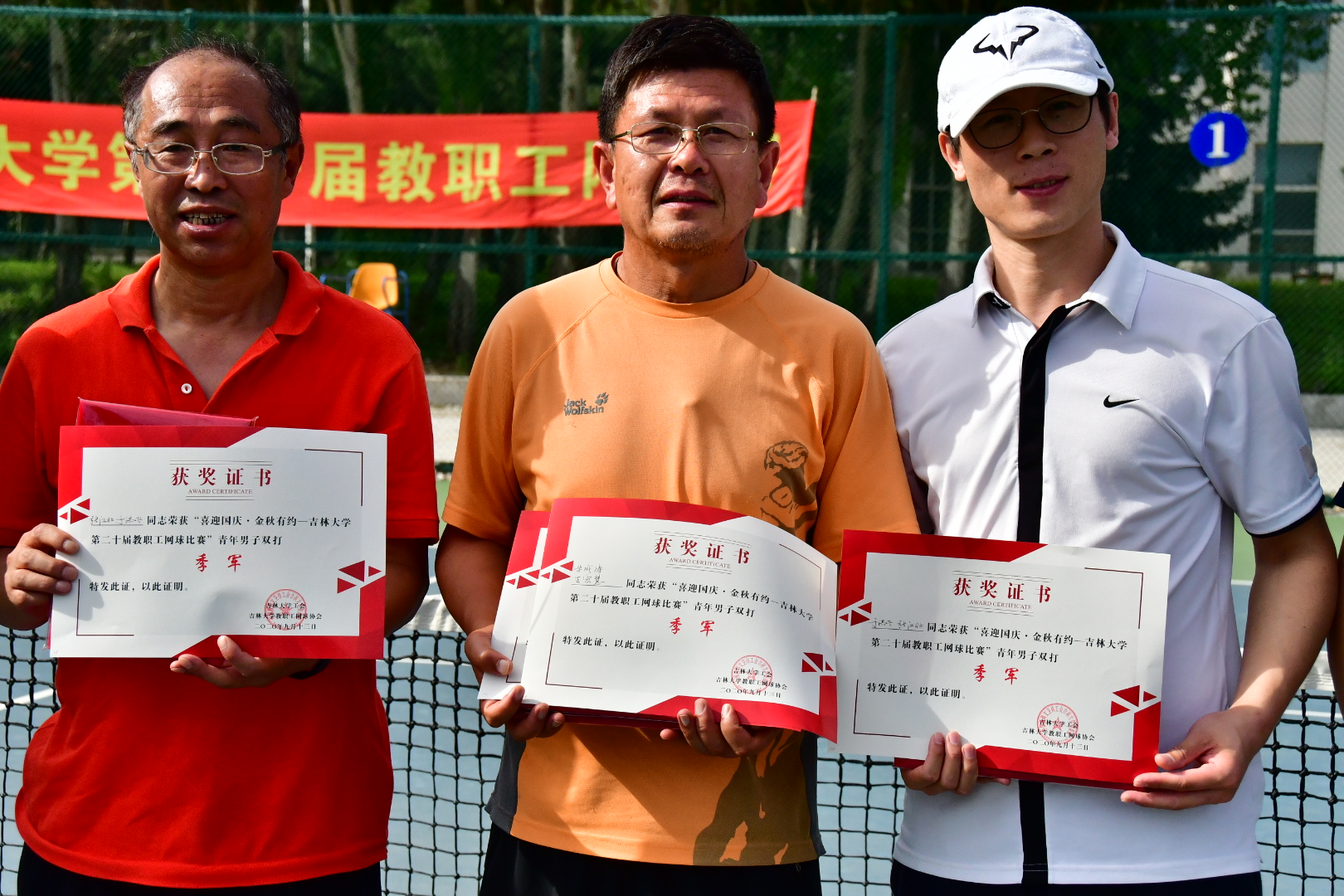 由校工会举办的“喜迎国庆,金秋有约”成人网站 第二十届教职工网球比赛顺利落下帷幕,成人网站 网球队代表张汉壮、于洪飞两位老师在比赛中激烈角逐、火力全开、奋勇拼搏,最终斩获青年男子双打季军、中年男子双打季军的骄人成绩!