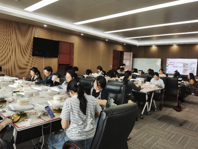 活动开始,由蛋糕师讲解并演示制作蛋糕的步骤及制作出精美蛋糕的技巧。期间还科普了动物奶油、植物奶油以及动植物混合奶油的区别。随后,大家便迫不及待地开始动手体验,按照蛋糕师讲解的流程,再结合自己的想法,用奶油、新鲜的水果等食材丰富和装饰蛋糕,一边精雕细琢,一边交流心得,现场充满激情,兴致盎然,人人都沉浸在自己动手制作蛋糕的过程中,体验着烘焙带来的乐趣,最终都制作出了令自己满意的蛋糕。