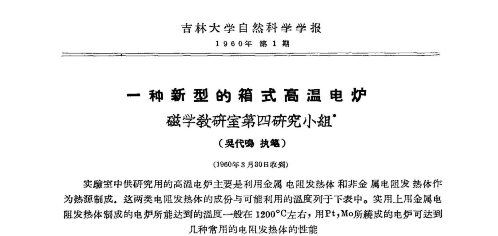 吴代鸣在1960年3月发表的首篇论文