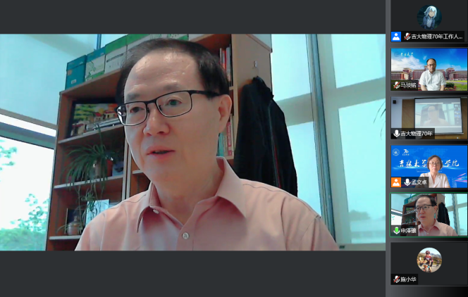 俄罗斯外籍院士、新加坡南洋理工大学教授申泽骧代表校友做了讲话。申泽骧校友回忆了当年在吉大物理就读的场景,表达了对母校的深深的热爱,感谢当年各位老师的培养。并欢迎吉大物理学子到新加坡访学,表示愿为在新加坡学习、工作的吉大物理学子提供必要帮助,号召世界各地校友积极与母校联系,共同做大余瑞璜基金,使学院发展更上层楼 。