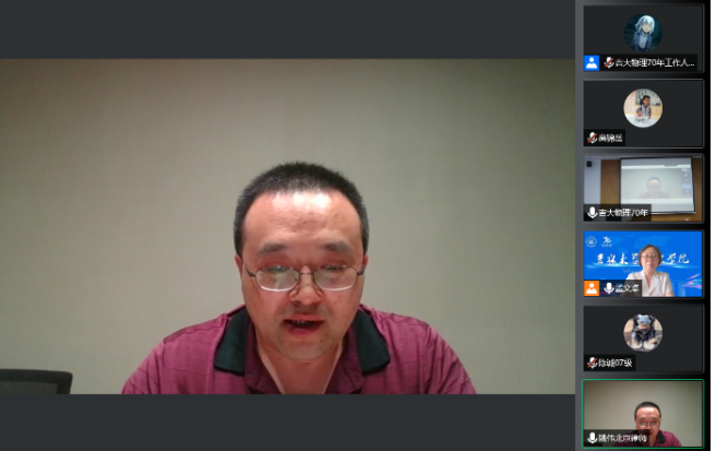 邹勃全面详细的汇报了“吉大物理70年”筹备情况,并以吉大物理校友会的名义,向海内外校友发出倡议,诚盼各位校友以拳拳之心、殷殷之情,在自愿的前提下,慷慨解囊、踊跃捐款,共同为余瑞璜基金的壮大、为吉大物理的建设发展添砖加瓦。巍巍高山,不辞细壤;潺潺溪流,终汇江海。邹勃坚信,广大校友的鼎力相助将升华为巨大的精神动力,推动学院各项事业高质量发展。