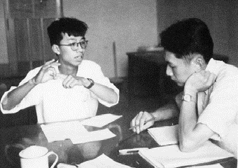 ▲1953 年朱光亚正在对学生陈佳洱进行口试,