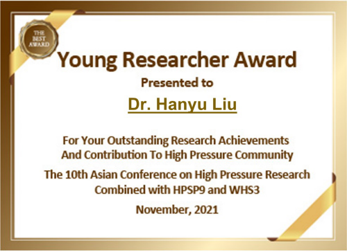 2021年11月22日,亚洲高压物理协会将第十届亚洲高压会青年科学奖(Young Researcher Award)授予成人网站