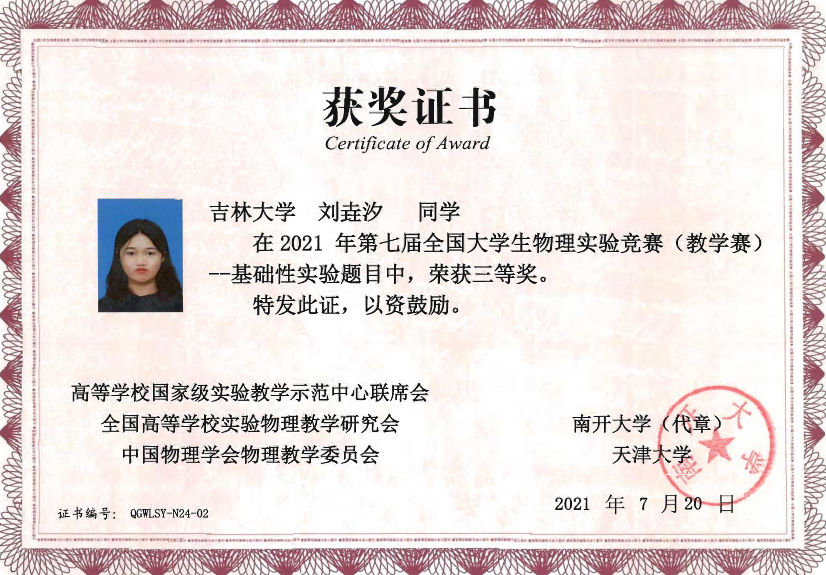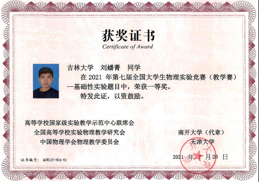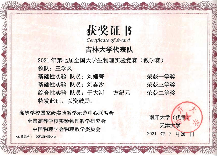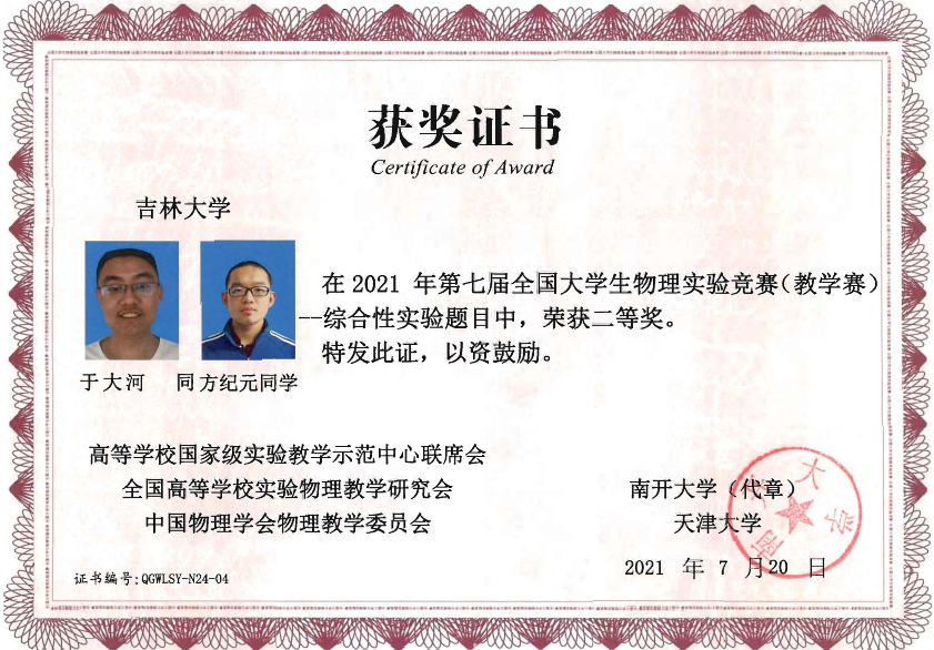 的4名本科生组成,他们在比赛中取得了佳绩:2019级本科生刘蟠菁获基础性实验一等奖,2019级本科生于大河、方纪元获综合性实验二等奖,2018级本科生刘垚汐获基础性实验三等奖,成人网站