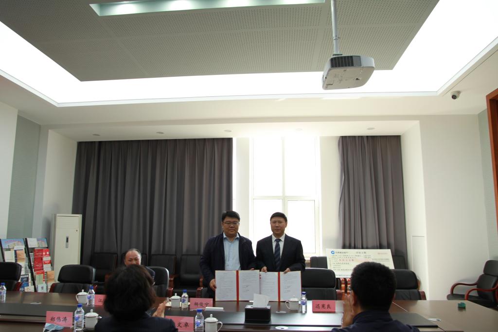 校友联络和教育基金管理处处长迟宪良与南昌金黄光半导体照明有限公司董事长杨俊宁签署捐赠协议,并互赠捐赠证书和捐赠支票。