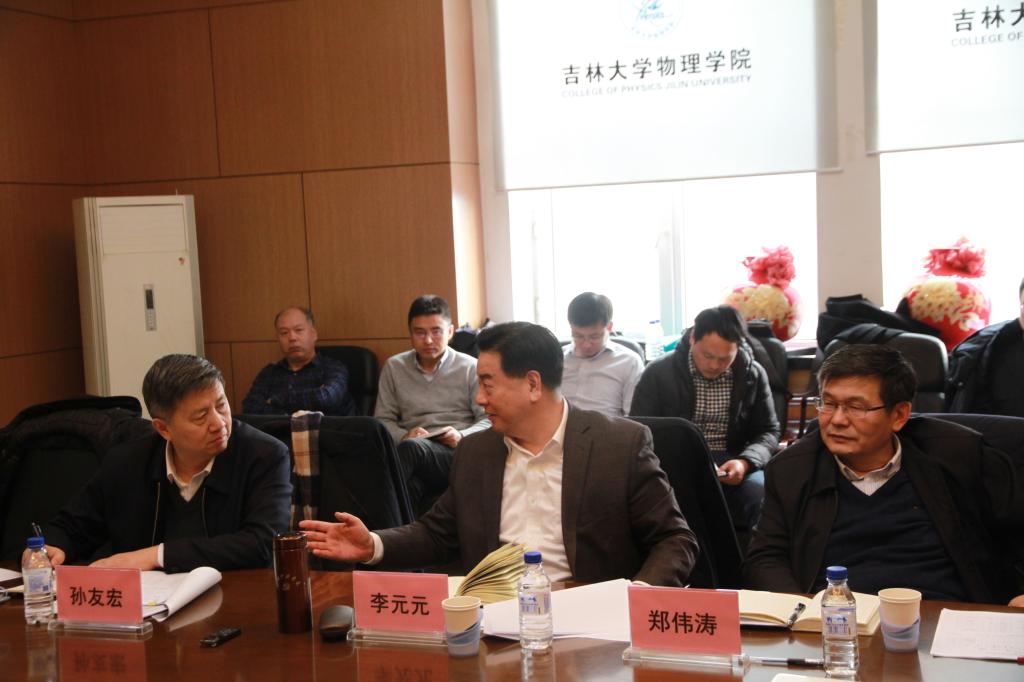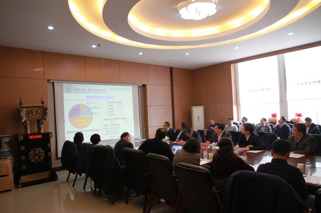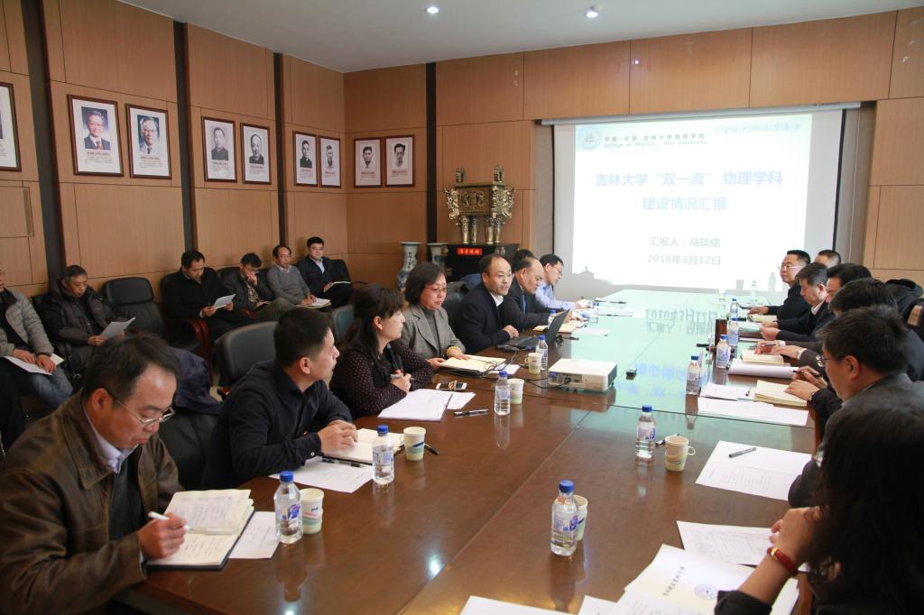 马琰铭院长从人才培养、师资队伍建设、科学研究、国际合作、社会服务、文化传承等方面汇报了物理学科开展“双一流”建设以来的进展情况。学科带头人丁大军教授、刘冰冰教授分别代表原子与分子物理研究所、超硬材料国家重点实验室围绕团队建设情况以及双一流建设过程中遇到的瓶颈和问题做了汇报。