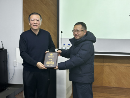 分别给两位专家颁发了“余瑞璜大讲堂”纪念奖牌。“余瑞璜大讲堂”是学院为了纪念以余瑞璜先生为代表的老一辈物理人而专门设立的最高层次的学术讲堂。以培养未来物理学家为目标,学院将定期邀请学界大家做客讲堂。