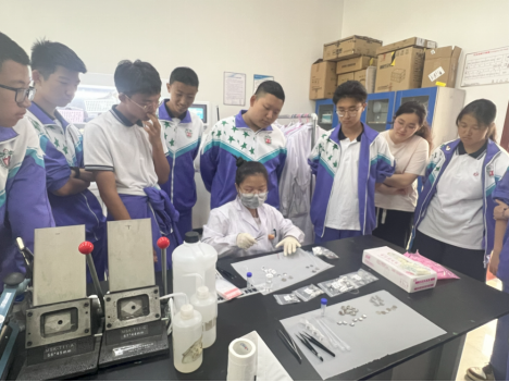 活动中,学生们首先参观了新型电池物理与技术教育部重点实验室的材料合成实验室、电化学实验室等,并同现场的科研人员进行了深入交流和热切互动。实验室科研人员为大家科普了新型电池相关的基础知识,并带领学生亲手体验水系电池的安装、测试等过程。学生们在这里看到了先进的科研设备和严谨的实验环境,了解了储能领域的最新成果和突破,对新型电池的研发过程和应用前景有了更直观的认识。