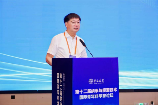 张希代表学校向莅临本次论坛的专家学者和行业代表表示热烈欢迎。他指出,纳米与新能源两大领域不仅各自研究成果丰富,而且存在着广泛的交集和协同的潜力,有望碰撞出创新的火花,催生出颠覆传统认知的新原理。希望大家共同努力营造平等交流、讨论,甚至争论的学术氛围,通过充分的交流互动,跳出自己思维的定势,迸发出解决问题的新思路,共同挑战关键科学和技术难题。他强调,青年人是科学的未来,是国家乃至世界的未来,选择适合自己的科研领域十分重要。在过度竞争、过度拥挤的科研赛道中,很难有足够的耐心和定力开展原创性研究。希望大家善于另辟蹊径,大胆开拓新领域新赛道,想他人所未想,做他人所未做,孕育原创性科研成果。