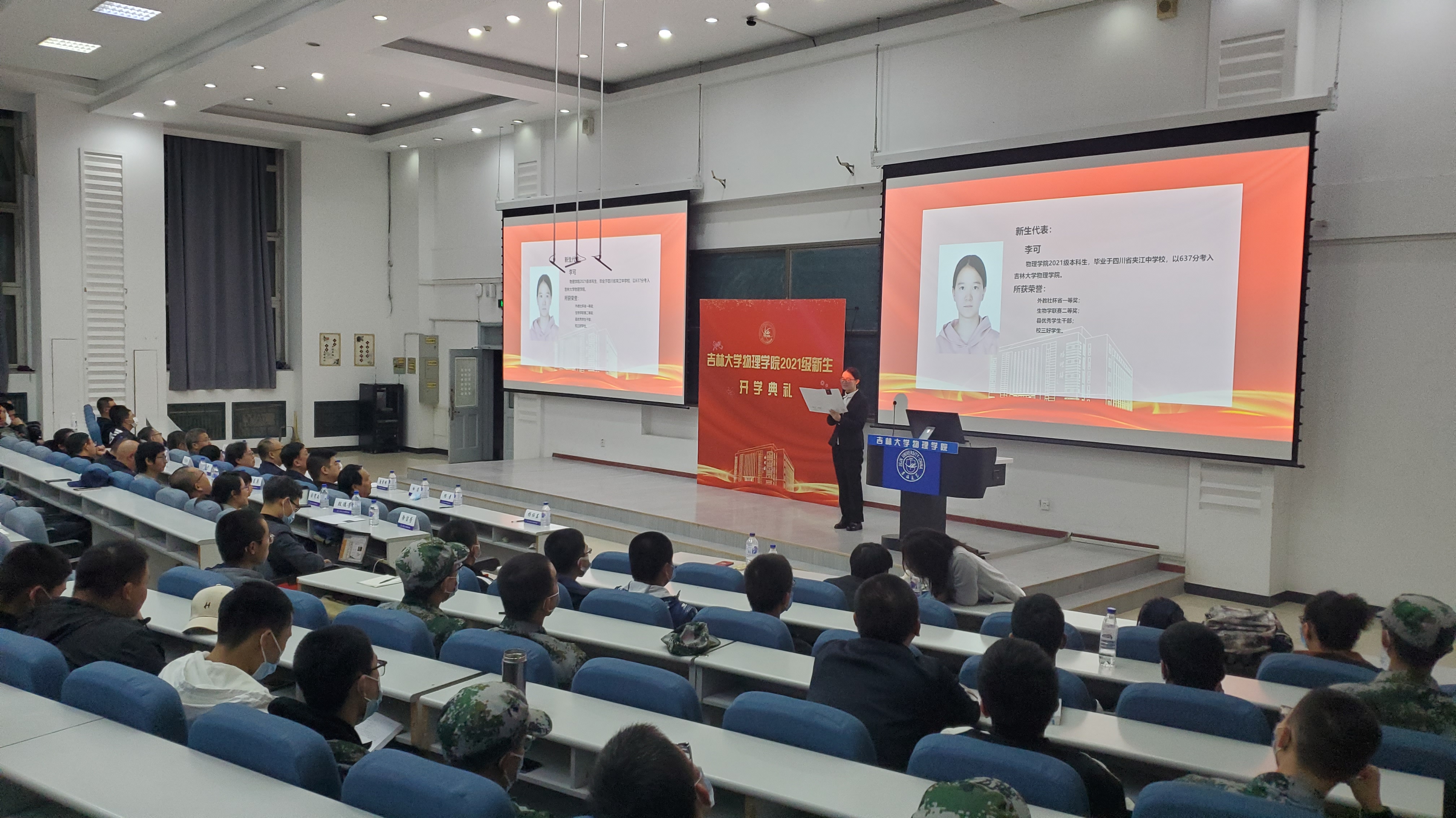 紧接着,学生代表发言。2021级李可同学作为新生代表,以昂扬的精神面貌,展现了 2021级新生不惧困难,怀着对物理的信仰,对未知的渴望,肩负着师长的嘱托,民族的希望,努力奋斗的精神品质。2020院长奖学金获得者之一的廖一朴同学作为老生代表向新同学们分享了自己在成人网站