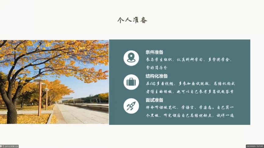 成功举办2022-2023学年第四期研究生就业分享会。本次活动采取线上方式,共邀请了四名2023届硕士毕业生分享和交流教师、公务员类求职面试经验,得到了学院各年级研究生的热烈响应。