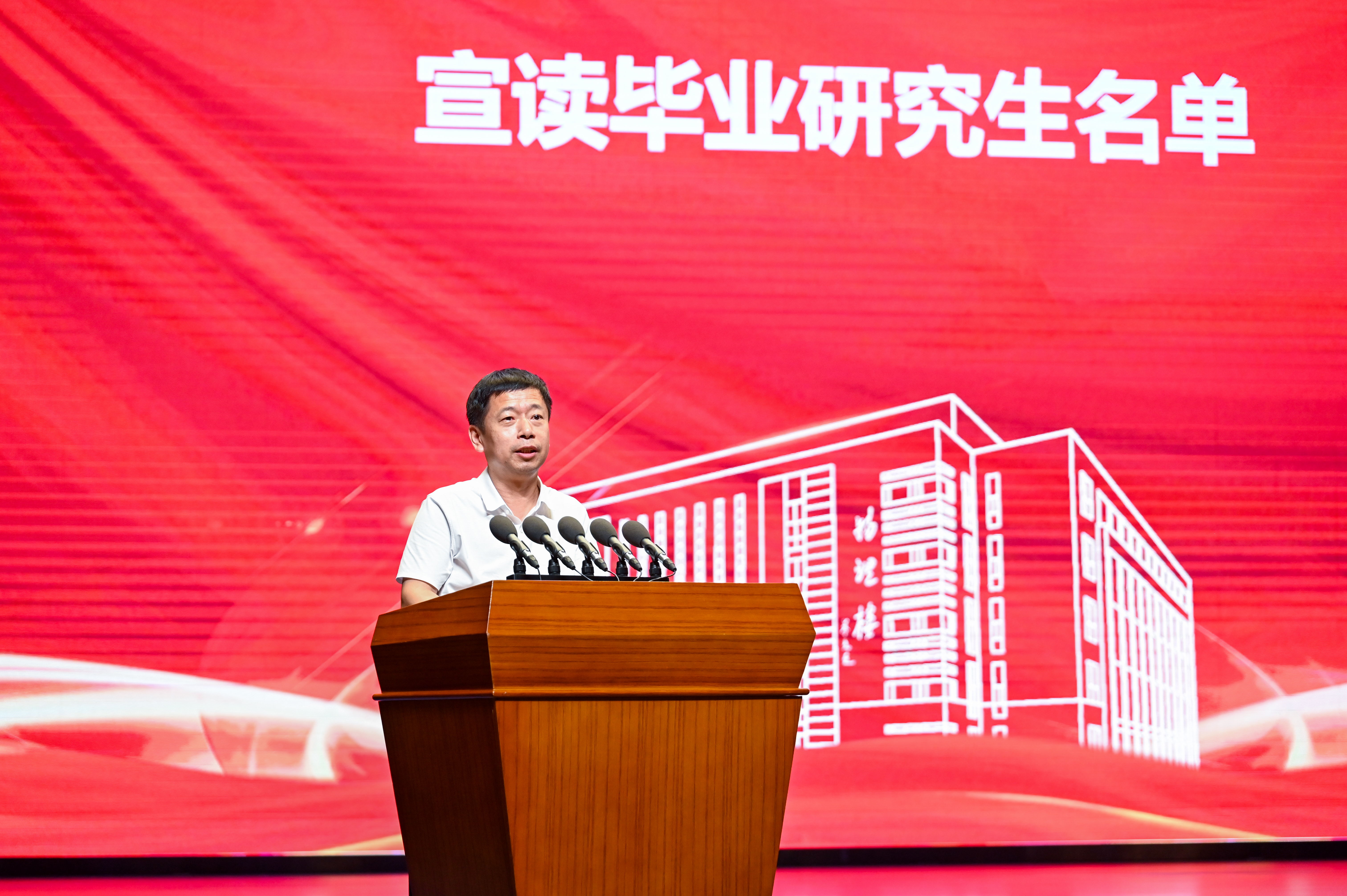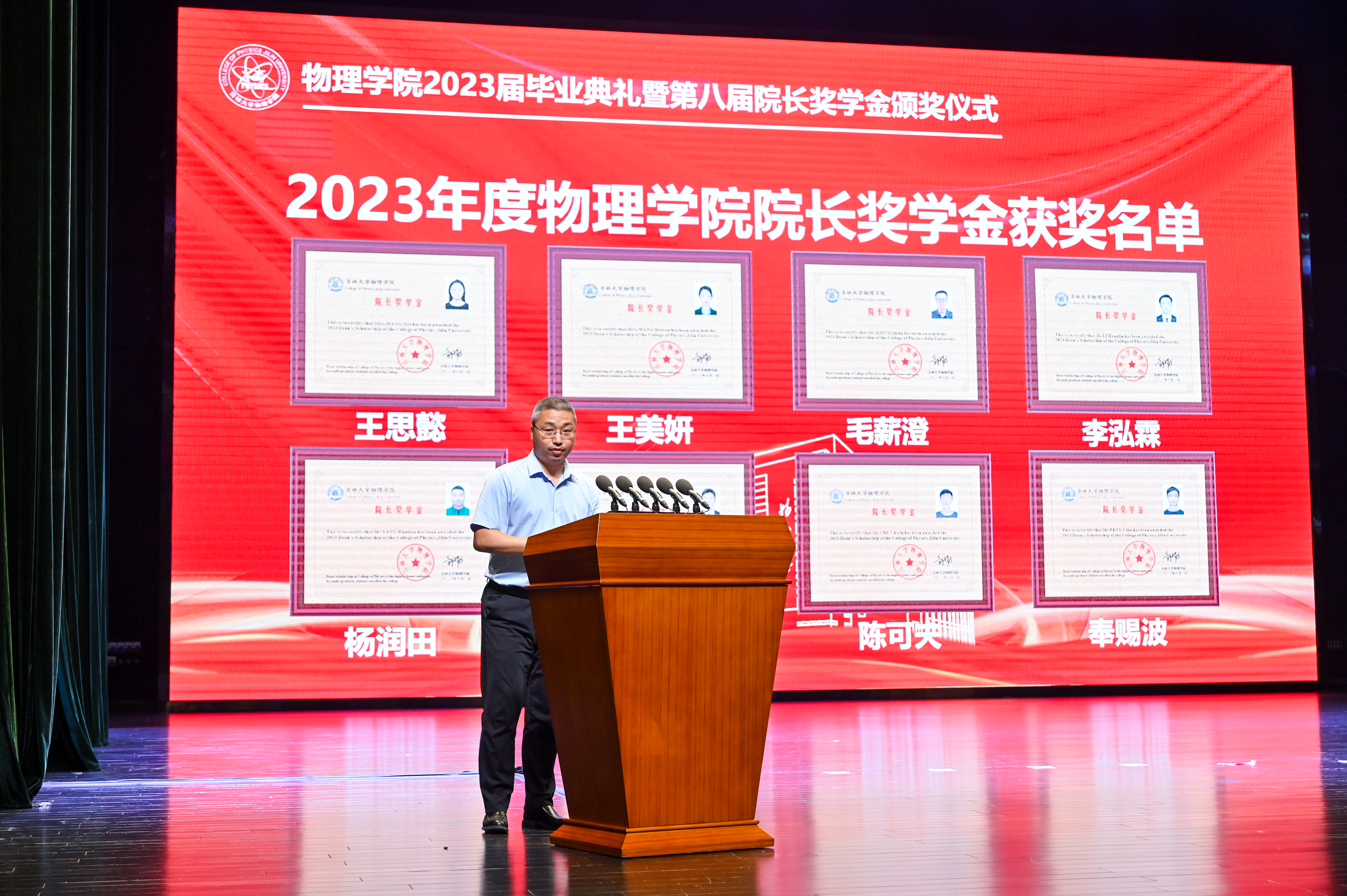 学院副院长孙成林宣读毕业研究生名单,学院副院长王海军宣读毕业本科生名单。
