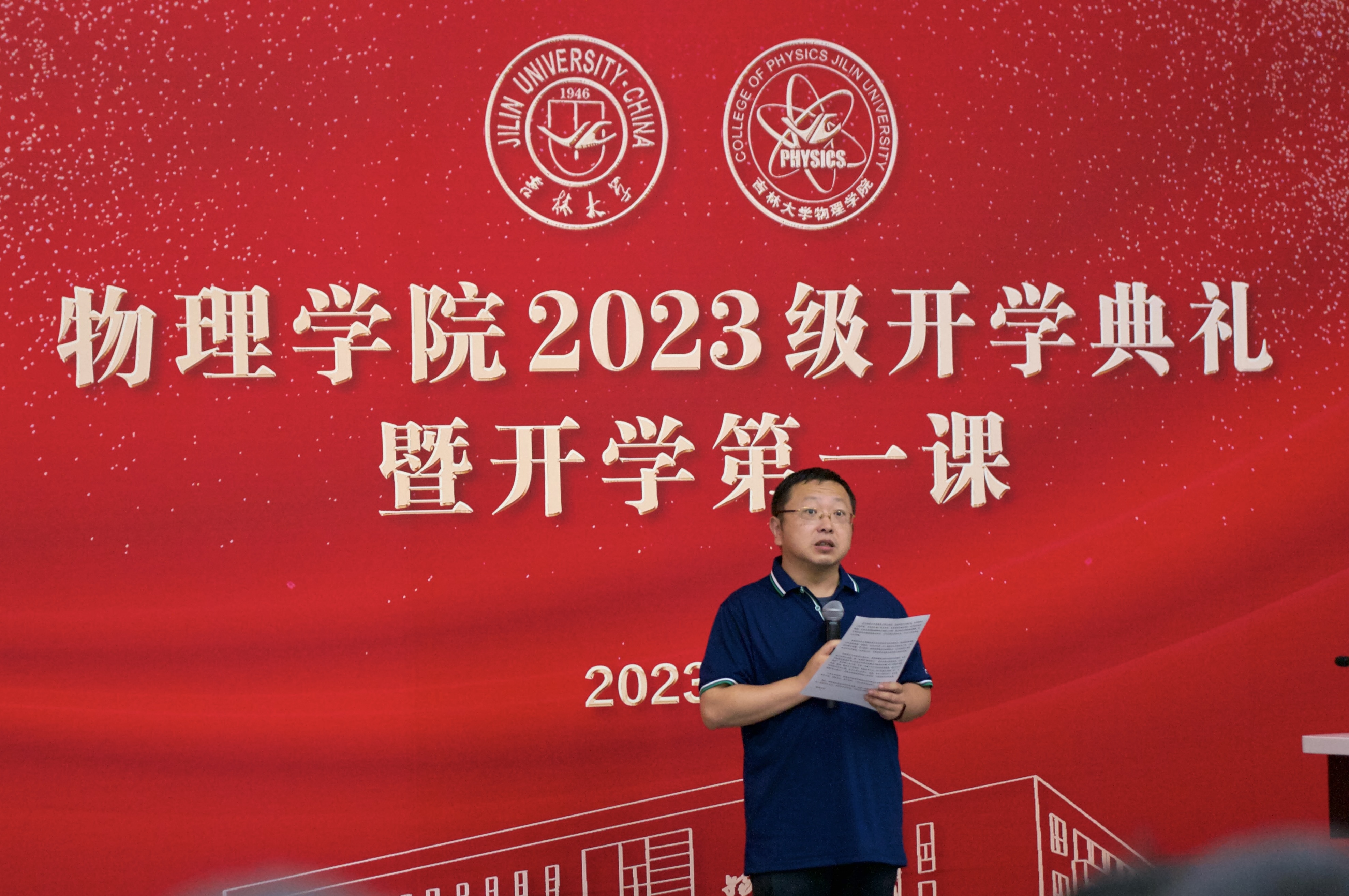 教师代表王鑫教授向2023级新生发表了热情洋溢的欢迎词。王老师回忆了自己在大学城学习生活的时光,建议同学们打牢基础,将被动学习转变为主动学习;开拓思维,跳出“标准”“模型”的圈子,敢于挑战,勇于创新;永葆好奇心相比解决问题,提出问题更为重要。最后,王老师以“人生漫漫,不要为一时成败而苦恼。”为结语鼓励同学们享受大学生活,祝福同学们学有所成。
