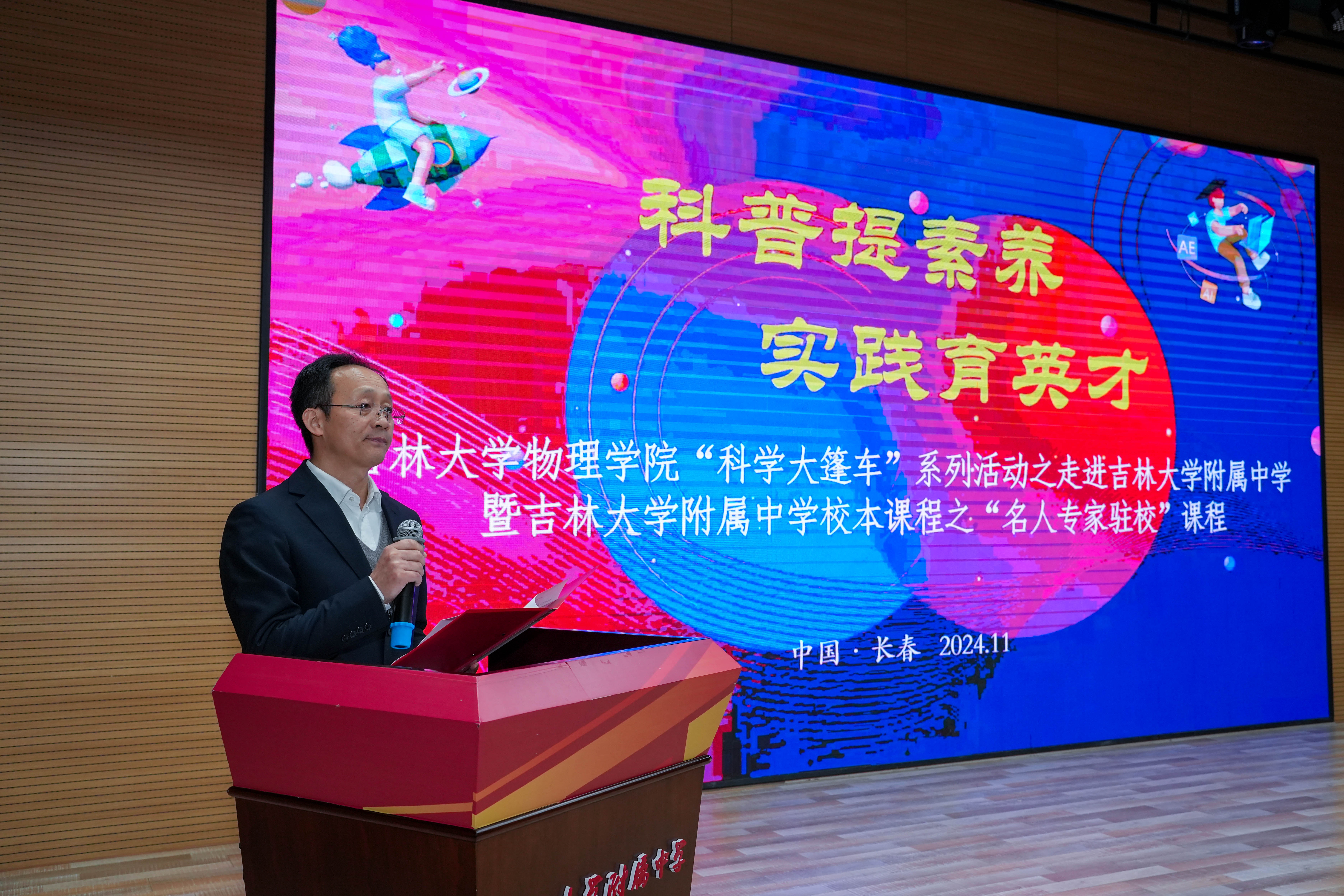 教学委员会主任委员张汉壮教授以《物理科学之美,演绎人类文明》为题为同学们上了一堂特别的物理科普课。张教授凭借其在物理领域的深厚造诣、卓越成就以及独特的教学魅力,以深入浅出、妙趣横生的讲解方式,将复杂晦涩的物理知识巧妙转化为生动形象、易于理解的科学盛宴,充分展现了其扎实的学识功底与渊博的知识储备。在讲座过程中,张教授不仅引领同学们尽情领略了物理科学的雄浑磅礴之美,深入感悟其在人类文明漫长演进历程中的中流砥柱作用,更点燃了同学们内心深处对物理科学的炽热热爱与无尽探索欲望。激励着同学们在科学的浩瀚星空中勇敢无畏地追寻真理之光,持续不断地提升自身科学素养与综合实践能力,为具有创新精神与实践能力的新时代杰出人才奠定坚实基础。