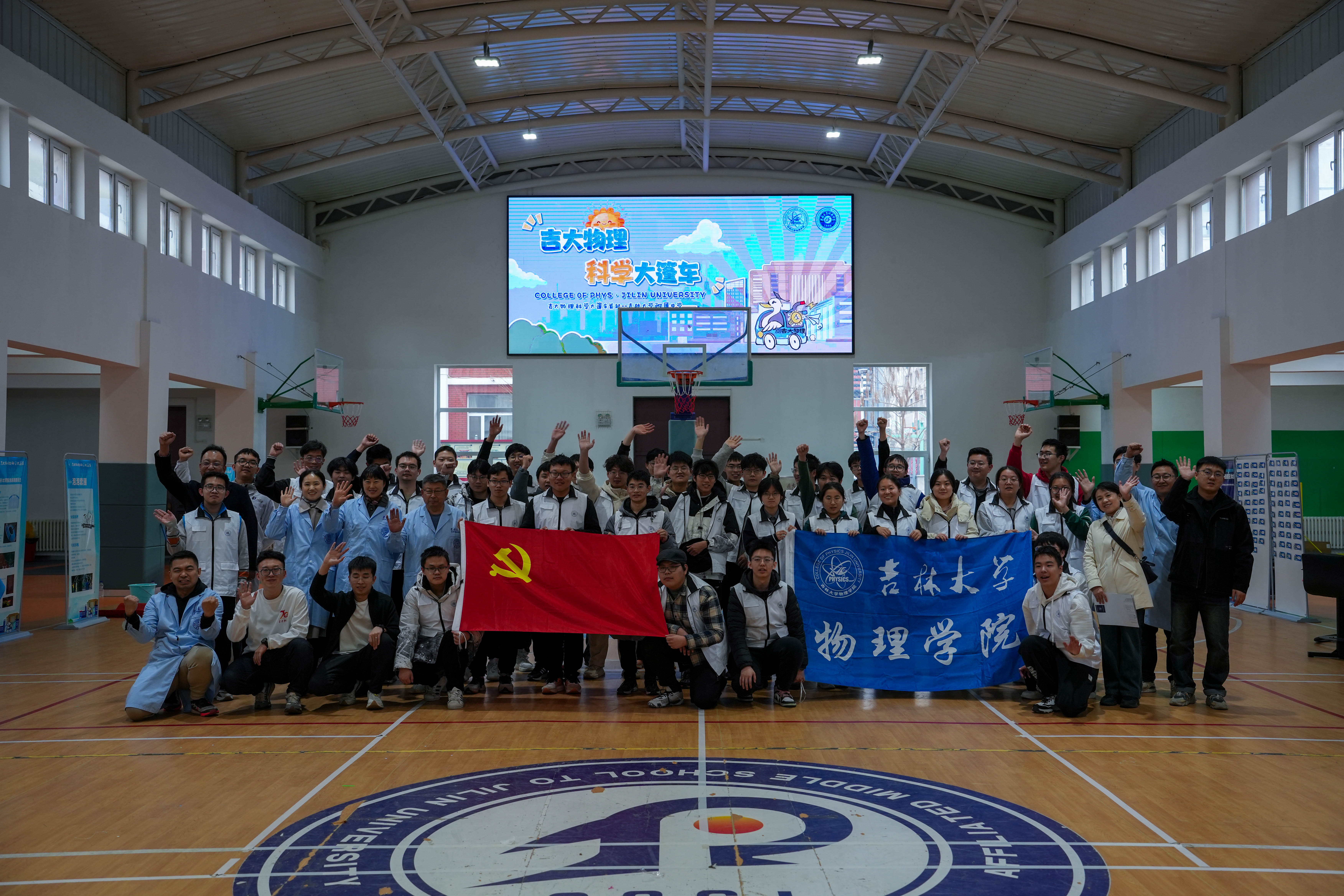 党委书记孟文卓教授和党委副书记兼副院长杨讴菡为志愿者们在物理楼前进行了出发动员,孟书记强调了活动的重要意义,鼓励同学们积极参加将所学所想应用到实际中去,同时强调了在科普实验展示过程中一定要注意安全。
