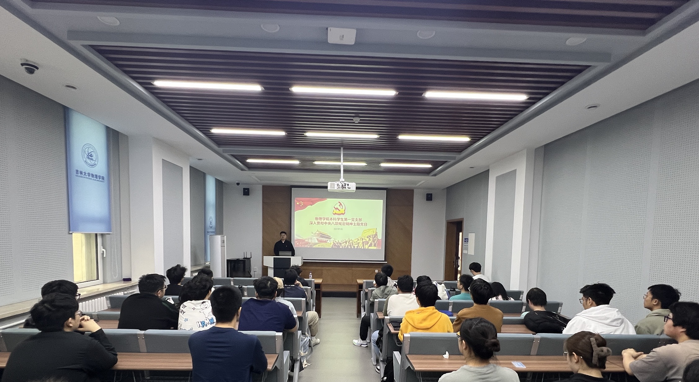 首先杨景书记结合自身求学经历,为同学们进行了一堂意义深刻的党课,杨书记告诫同学们作为学生党员要从自身做起,在日常学习生活中要时刻严格要求自己,加强理论学习,注意自身形象,加强作风建设,并且要长期坚持下去。作为学生党员现阶段的主要任务是好好学习,无论以后继续在吉大还是到其他高校或科研院所深造和工作,都要严格要求自己,展示一个吉大物理学子良好的精神风貌。