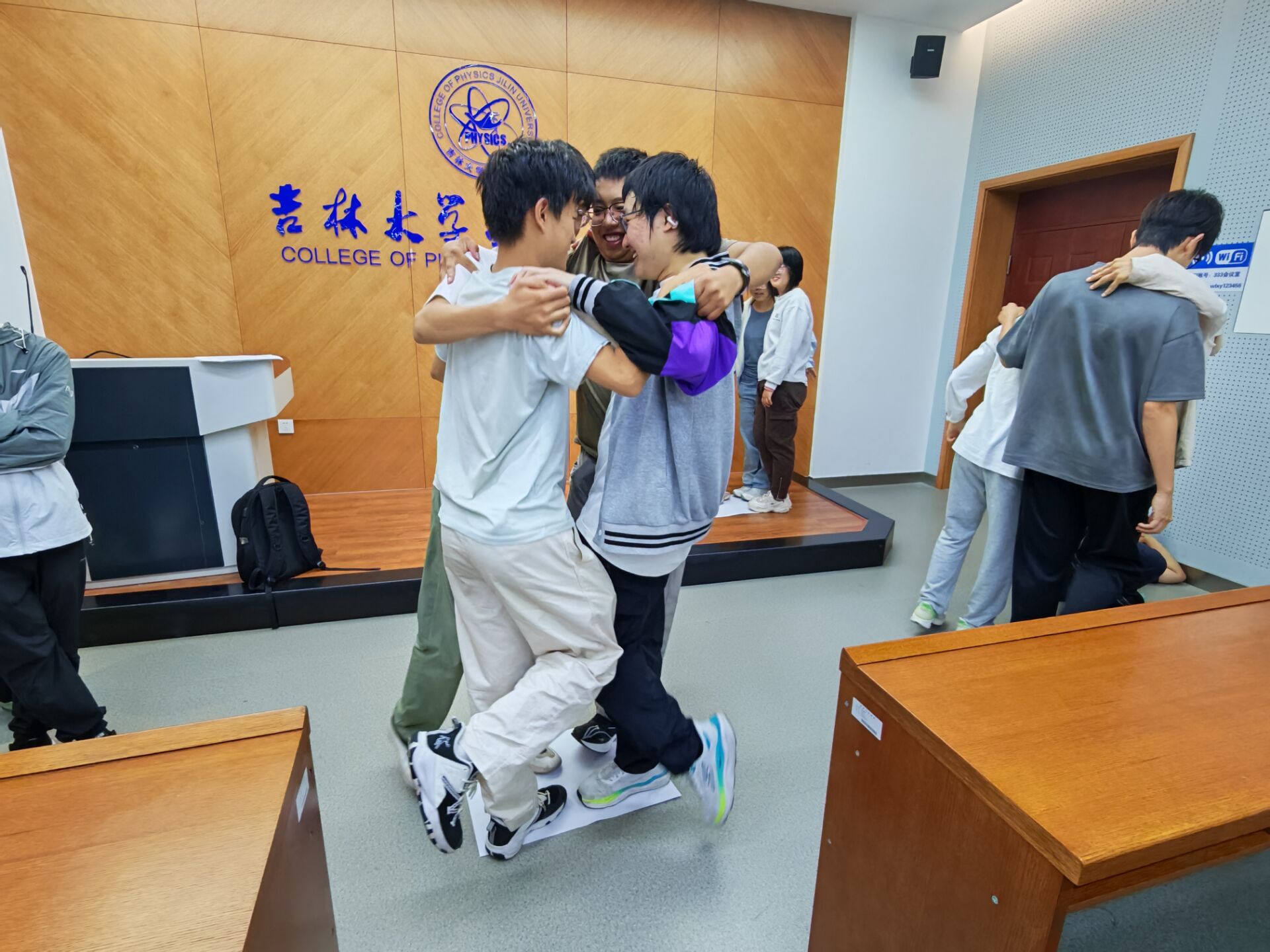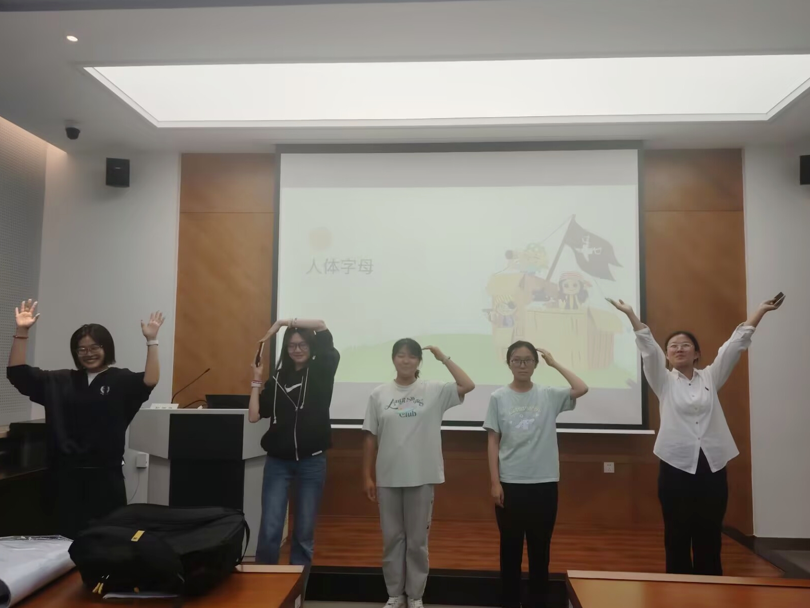 活动尾声,通过“人体字母”和“快乐传递”的环节,同学们感受到了集体的温暖与鼓励。每位同学都积极参与,将心中的感受书写在纸上,相互传递,温馨的互动为本次活动画上了完美的句点。