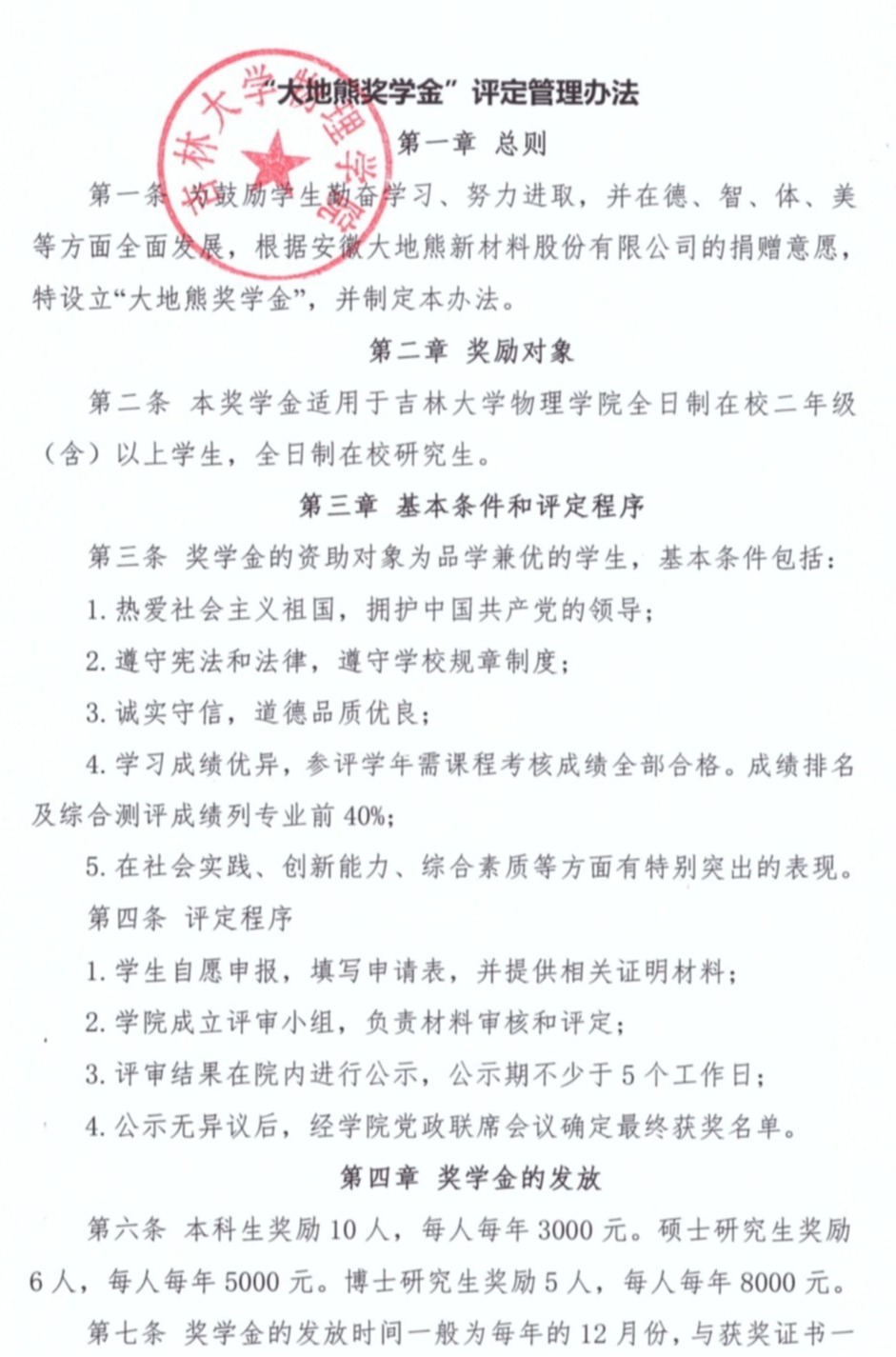 “大地熊奖学金”评定管理办法